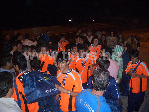 Πρωταθλητής Κυκλάδων αναδείχθηκε ο Αθλητικός Όμιλος Τήνου στους έφηβους. Στον τελικό του πρωταθλήματος που έγινε στη Νάξο, οι έφηβοί μας νίκησαν το Αγερσανί Νάξου με 4-3 (3-3 ο κανονικός αγώνας) στη διαδικασία των πέναλτι. Ο κανονικός αγώνας ήταν συναρπαστικός. Η ομάδα μας προηγήθηκε γρήγορα με 2-0 και με αυτό το σκορ τελείωσε το ημίχρονο. Το δεύτερο μισό του αγώνα ήταν γεμάτο φάσεις. Η ομάδα της Νάξου κατάφερε και πάλι να προηγηθεί με 3-2 αλλά λίγο πριν από το τέλος του αγώνα δέχθηκε την ισοφάριση, σκορ που δεν άλλαξε μέχρι το τέλος του αγώνα και έτσι ο νικητής αναδείχθηκε από το σημείο του πέναλτι. Εκεί οι παίχτες της ομάδας μας φάνηκαν πιο ψύχραιμοι και πήραν τη μεγάλη νίκη και τον τίτλο με 4-3. Τα γκολ του ΑΟΤ στην κανονική διάρκεια του αγώνα πέτυχαν οι: Περιάλης, Ξενόπουλος, Μαραγκός. Ελπίζουμε το ίδιο να καταφέρει και η ανδρική ομάδα του ΑΟΤ η οποία αγωνίζεται στα μπαράζ του τοπικού πρωταθλήματος και να κερδίσει το πολύτιμο εισιτήριο για την Δ’ Εθνική.