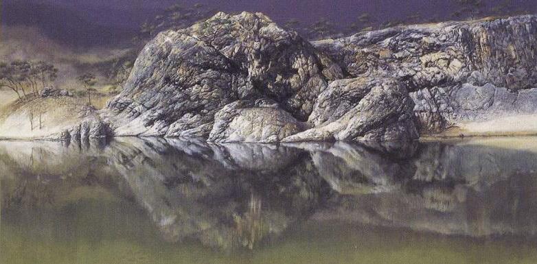 η φωτογραφία ενός βραχώδους σχηματισμού σε μία λίμνη της Βουδιστικής Βιρμανίας.