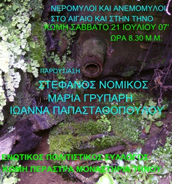 προσκαλούμε στην έκθεση με θέμα: "Νερόμυλοι και Ανεμόμυλοι στο