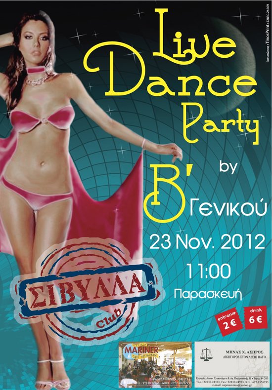 Live Dance Party by Β' Γενικού Παρασκευή 23 Νοεμβρίου 2012 Ώρα : 23.00
