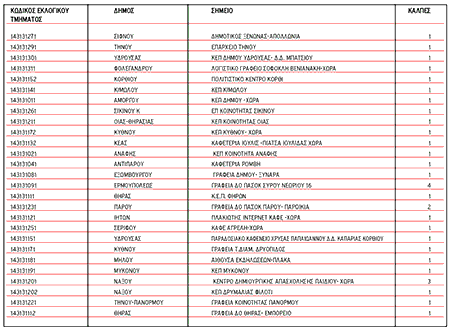 Αναλυτικότερα τα εκλογικά τμήματα στα νησιά θα είναι: