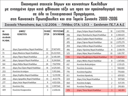 με 32 έργα, συνολικού προϋπολογισμού 37.407.493 ευρώ. Η Ερμούπολη