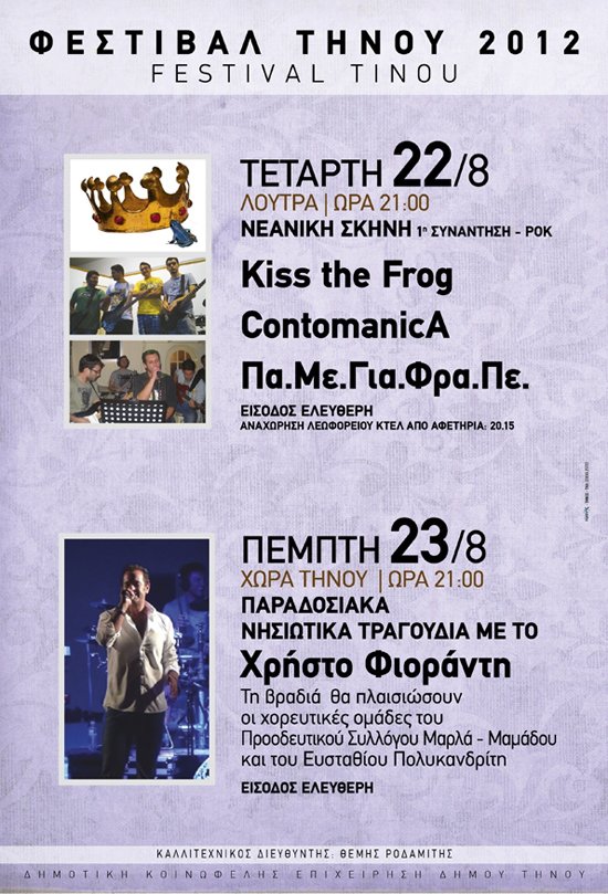 Πέμπτη 23/8 Χώρα Τήνου Ώρα 21.00 Παραδοσιακά Νησιώτικα με τον Χρήστο Φιοράντη