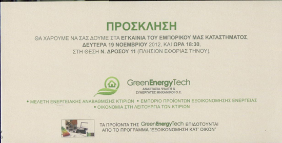 Θα χαρούμε να σας δούμε στα εγκαίνια του εμπορικού μας καταστήματος . Δευτέρα 19/11/2012 και ώρα 18.30 στη θέση Ν.Δρόσου 11 ( πλησίον εφορίας Τήνου)