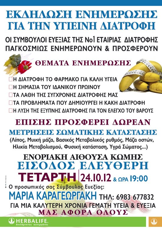 Οι Σύμβουλοι Ευεξίας της Νo1 Εταιρείας Διατροφής Παγκοσμίως ενημερώνουν & προσφέρουν