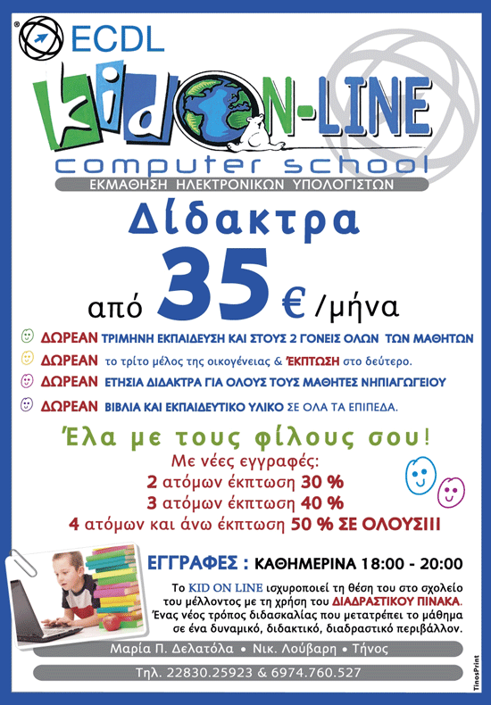 Εγγραφές : Καθημερινά 18.00-20.00