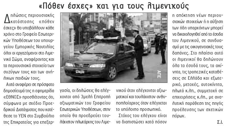 ή αστυνομικές αρχές σε βάρος κάποιου, τότε η έρευνα του «πόθεν έσχες» γίνεται
