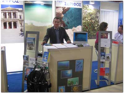 Της κυκλαδες εκπροσώπησαν επάξια τα νησιά Σύρος - Ανδρος – Κέα – Μήλος – Πάρος - Σέριφος που συστεγάστηκαν σε ένα έξυπνα σχεδιασμένο περίπτερο την επιμέλεια του οποίου είχε η Αναπτυξιακή εταιρία Κυκλάδων . Το νησί της Σερίφου εκπροσωπήθηκε από τη σχολή κατάδυσης Serifos Scuba Divers και τον διευθυντή εκπαίδευσης Αντώνη . Γ .Αντωνάκη , μοιράστηκε διαφημιστικό υλικό και οδηγίες στους επισκέπτες για της δραστηρίοτητες που μπορούν να βρουν στη Σέριφο την καλοκαιρινή αλλά και χειμερινή περίοδο , δραστηρίοτητες όπως θαλάσσια σπορ , περιηγήσεις σε λαογραφικά μουσεία , περιπάτους σε χαρακτηρισμένα μονοπάτια , επισκέψεις σε μοναστήρια , καταδύσεις , θαλάσσιες περιηγήσεις , επισκέψεις στα παλιά ορυχεία στο μουσείο μεταλλωρύχων και στα θερμά λουτρά . Οι επισκέπτες στην κυριολεξία δίψαγαν για πληροφορίες σχετικά με την καταδυτική δραστηριότητα στη Σέριφο και ενημερώνονταν για τα καταγάλανα νερά την θερμοκρασία της θάλασσας καθ' όλη την διάρκεια του έτους , τα εκπαιδευτικά προγράμματα και τα προγράμματα για παιδιά .