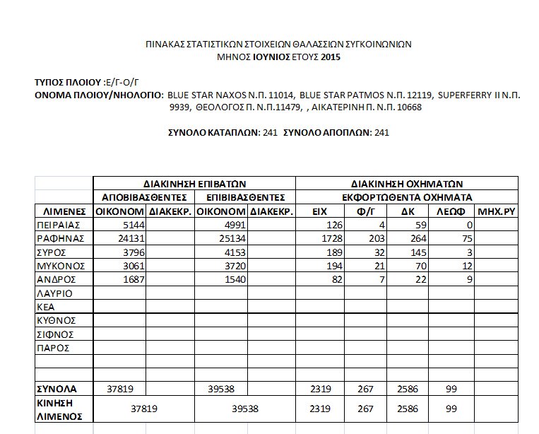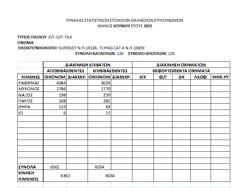 ΠΙΝΑΚΑΣ ΣΤΑΤΙΣΤΙΚΩΝ ΣΤΟΙΧΕΙΩΝ ΘΑΛΑΣΣΙΩΝ ΣΥΓΚΟΙΝΩΝΙΩΝ ΜΗΝΟΣ ΙΟΥΝΙΟΥ ΕΤΟΥΣ 2015