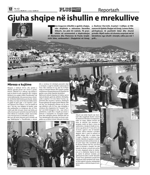 Tino inaguron shkollën e gjuhës shqipe, nën drejtimin e mësueses Veronika Shkurti, me plot 63 nxënës. Të pranishëm në ceremoninë e shpërndarjes së Abetareve dhe Fletoreve të Punës krejtësisht falas, ambasadori i Shqipërisë në Greqi, z. Dashnor Dervishi, kryetari i Lidhjes së Mësuesve të Gjuhës Shqipe në Greqi, Lorenc Koka, përfaqësues të pushtetit lokal dhe shumë prindër. Mjaft reale e të vërteta surprizat më të këndshme nga ishulli i shenjtë, edhe pse më 1 prill...